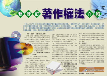 整體而言,此次修正有助於我國數位產業與電子商務之發展;另一方面可改善著作權執行實務,為我國建構一個更優質良好的著作權法制環境,並有助提升我國國際形象。有關新修正條文及相關資訊,請至經濟部智慧財產局網站 www1.tipo.gov.tw參閱,智慧財產局關心您的權益。