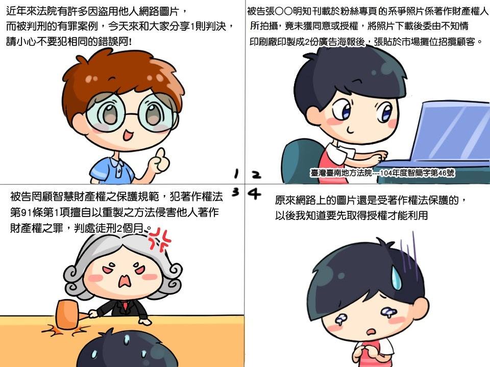 活動花絮:「把明星照片繪成Q版圖像會侵害著作權嗎?」、「判決案例_網拍使用他人商品圖」、「判決案例_販賣盜版」、「維護著作權益方式」