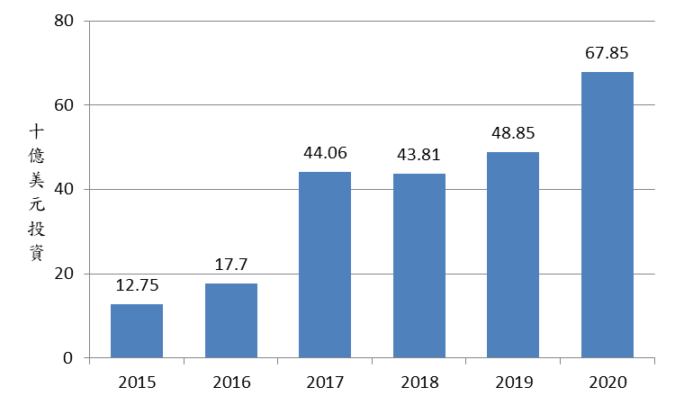 圖4 2015-2020年全球企業的AI投資(單位:十億美元)