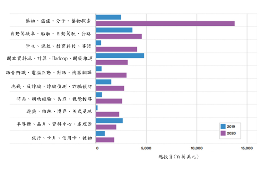AI正廣泛應用於醫療科技產業,尤其是在新藥探索領域,這可能是受COVID-19疫情影響所致。