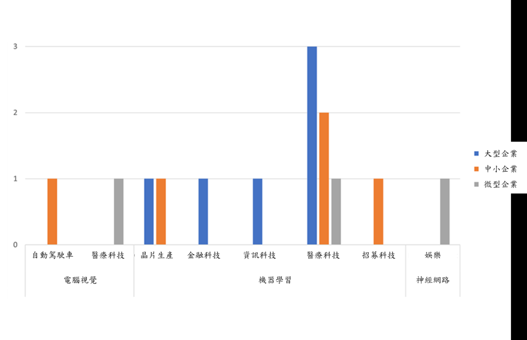 圖3 企業受訪者背景(依AI使用類型、應用領域和規模)